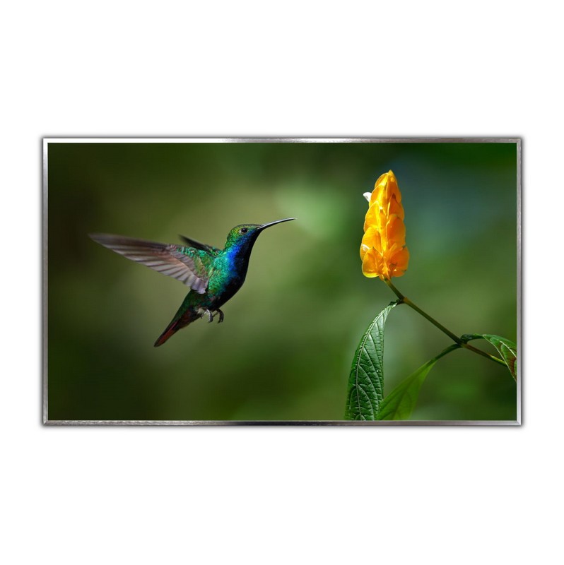 STEINFELD® Glas Infrarotheizung 4K Bilddruck mit Motiv Kolibri an Blüte